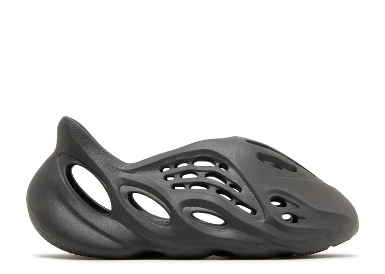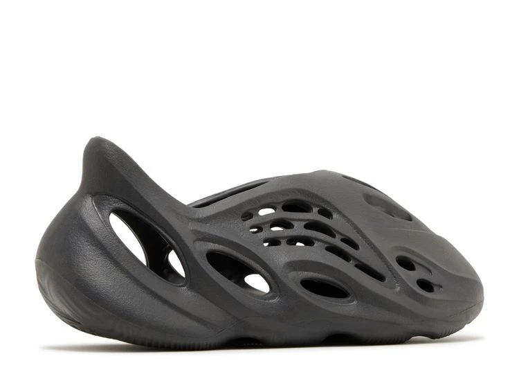 The adidas Yeezy Foam Runner โOnyxโ applies a sleek monochrome finish to the futuristic slip-on. Black injected EVA foam is utilized on the molded one-piece upper, featuring sculpted lines and a series of strategically mapped vents that allow for increased airflow. A contoured heel provides a secure fit, while the soft top layer of the footbed delivers step-in comfort. The lightweight build is underpinned by a wavy-traction outsole that offers sure footing on wet or dry surfaces.