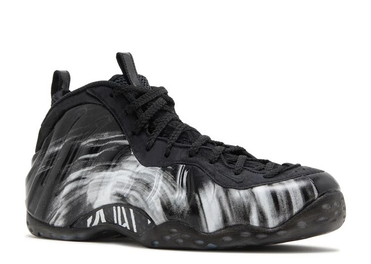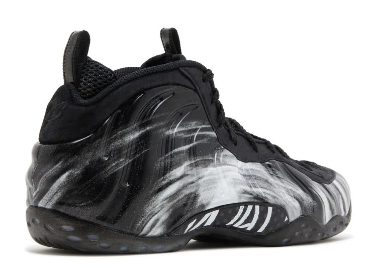 The Nike Air Foamposite One โBlackโ is taken from the two-piece โDream A Worldโ pack, featuring neutral colorways inspired by Roman philosopher Seneca. White brushstroke designs embellish the contrasting black upper, constructed from molded polyurethane with tonal suede construction throughout the collar and eyestay. Penny Hardawayโs 1 Cent logo is embroidered on the back heel, while custom insoles display a Seneca quote: โLuck/Success Happens When Preparation Meets Opportunity.โ Performance benefits full-length Zoom Air cushioning, a carbon fiber shank and a herringbone rubber outsole.